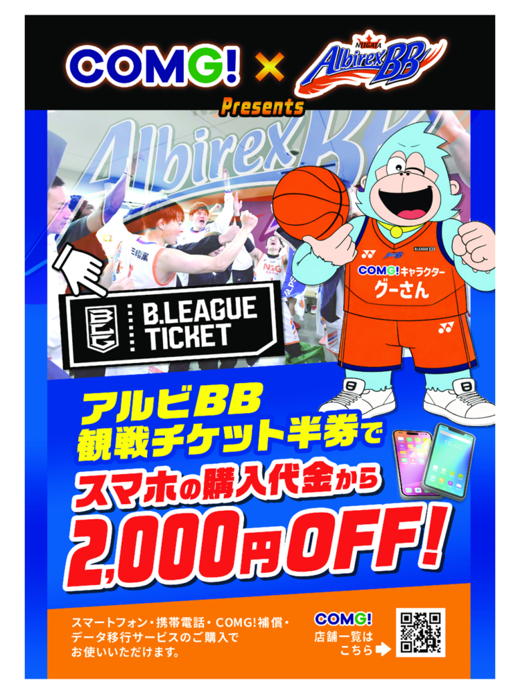 新潟アルビレックスBBへの熱いご声援と、COMG!へのご愛顧を、